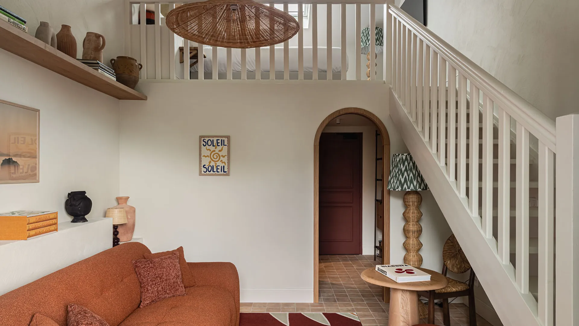 Upstairs, an open mezzanine houses a double bed, with an unobstructed view of the living space. This cocoon is ideal for couples, small families, or travelers looking for tranquility and extended comfort. True to the spirit of Maison Chiberta, every detail has been designed to combine elegance, functionality and a relaxed lifestyle in the heart of the Anglet Pine Forest.